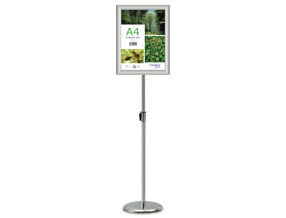 El atril de suelo Archivo 2000 es la solución perfecta para presentar información de manera clara y accesible. Con un diseño elegante y funcional, su estructura de aluminio ofrece una excelente combinación de durabilidad y sofisticación. Gracias a su capacidad de ajuste en altura, este atril es adaptable a diversas necesidades de visualización, manteniendo siempre una presentación profesional.